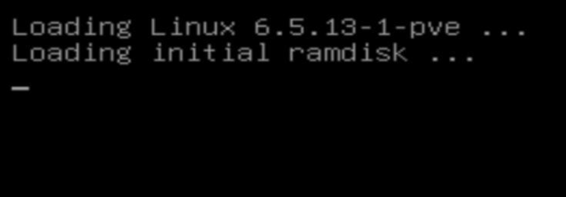 注意:在设备黑名单中添加amdgpu,并grub里开启引导自动加载后,pve启动时会卡在以下界面。是正常的!等待一会只要PVE可以通过网页访问到WebUI管理页面就是正常没问题的。因为PVE开机时会按照设备黑名单设置的,释放对核显的控制权。这样才能在核显直通给虚拟Win的时候避免冲突而导致的无法加载驱动,错误代码43